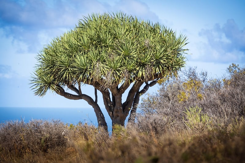 The Dragon's Blood Tree, scientifically named Dracaena Cinnabari, is a rare species known for its distinctive red resin. Its umbrella-shaped canopy and otherworldly appearance make it a captivating addition to any botanical collection.